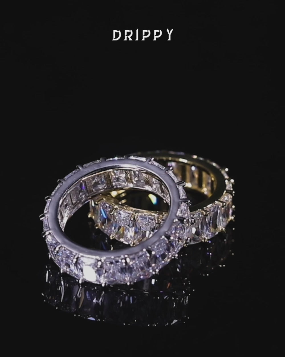 Drippy's Crystal radiant cut Eternity ring exemplifies simplicity at its finest. The hand-placed stones shine like no other and serve as the perfect complimentary piece to any of our other iced out products.