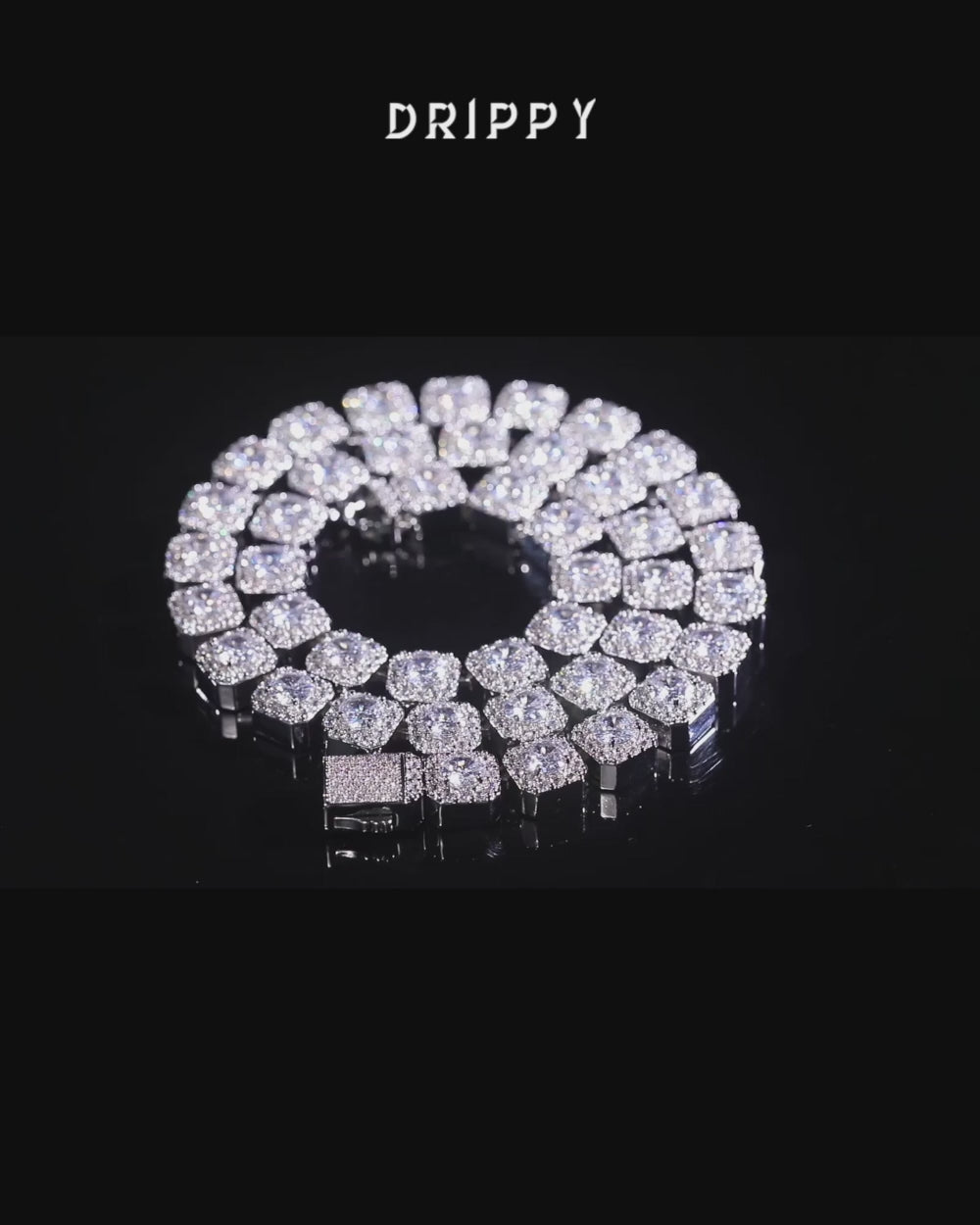 Drippy's 10mm Clustered Tennis Chain. Flooded in multiple layers of hand-set stones. A bold upgrade to the Tennis Chain.