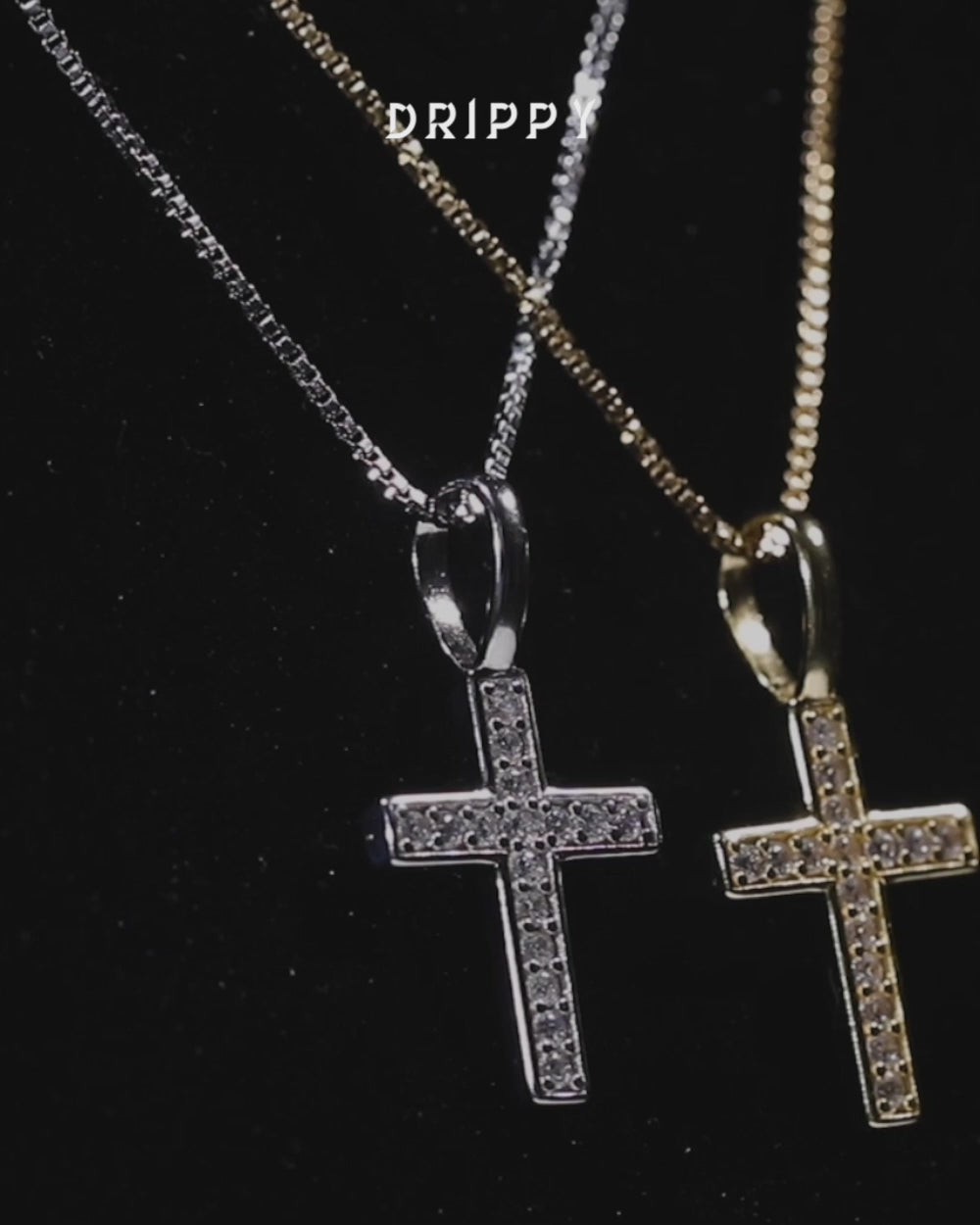 Drippy's Subtle Iced out Cross Pendant. A Subtle Spark. This Pendant is made up of 100% precious metals made from 925 Silver plated white White Gold.