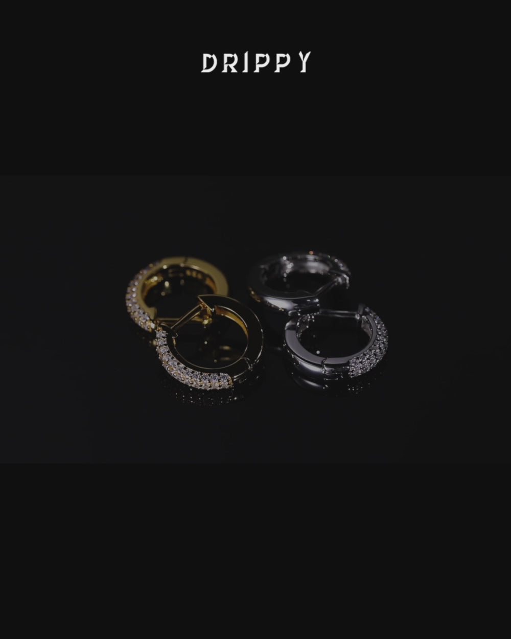 Our Sterling Silver and 18K Gold plated Hoop Earrings are fully iced out with VVS CZ Stones.