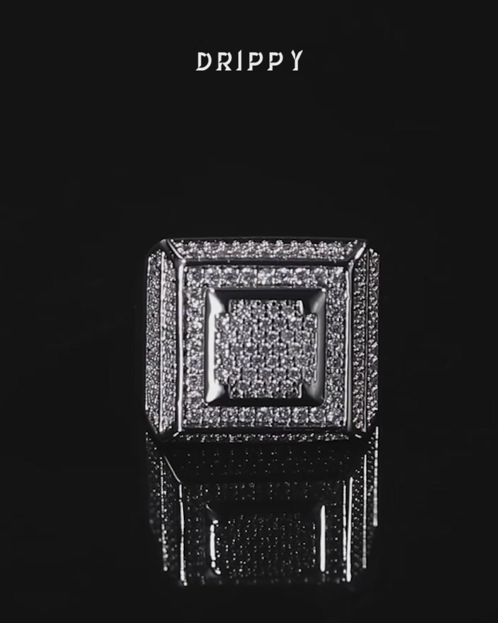 Drippy's Ice Blox Ring is the perfect complimentary piece to any of our iced out products. The ring is flooded in hand-placed stones with detail in layers so it draws attention to the center. A piece that will fit everything.